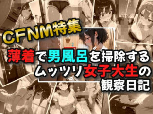 d_597514【0円フル漫画】【CFNM】薄着で男風呂を掃除するムッツリ女子大生の観察日記////