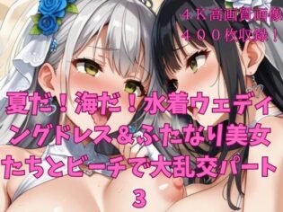 d_639697【0円フル漫画】夏だ!海だ!水着ウェディングドレス&ふたなり美女たちとビーチで大乱交パート3////